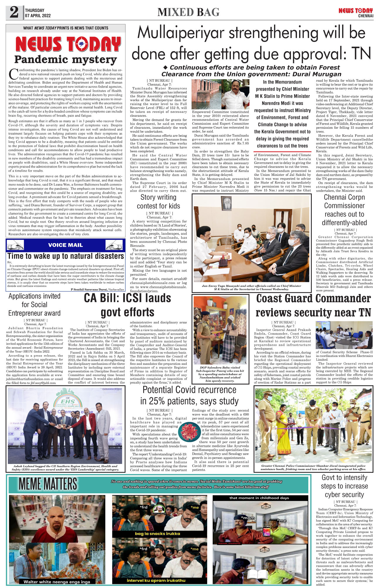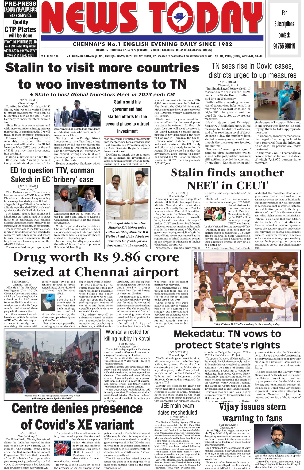 E-PAPER 7- April-2022 Spread the love Spread the love By NT BureauPosted on April 7, 2022April 7, 2022 #Mullaiperiyar, Beast, CA Bil, coast guard, don, Drug Seized, JEE, l Durai Murugan, mekedatu, MKStalin, neet, Sukesh, TN Covid, TNAssemblyCovid XE, vijay