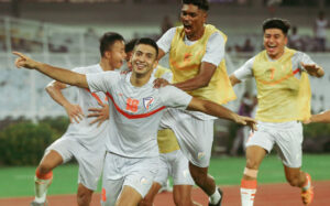 Kolkata : India produced a dramatic 1-2 victory against Afghanistan in their second match of Group D in the AFC Asian Cup Qualifiers 2023 at the VYBK Stadium on Saturday, with Sunil Chhetri and Sahal Abdul Samad scoring for the country in the 86th and 90+2nd minute respectively.