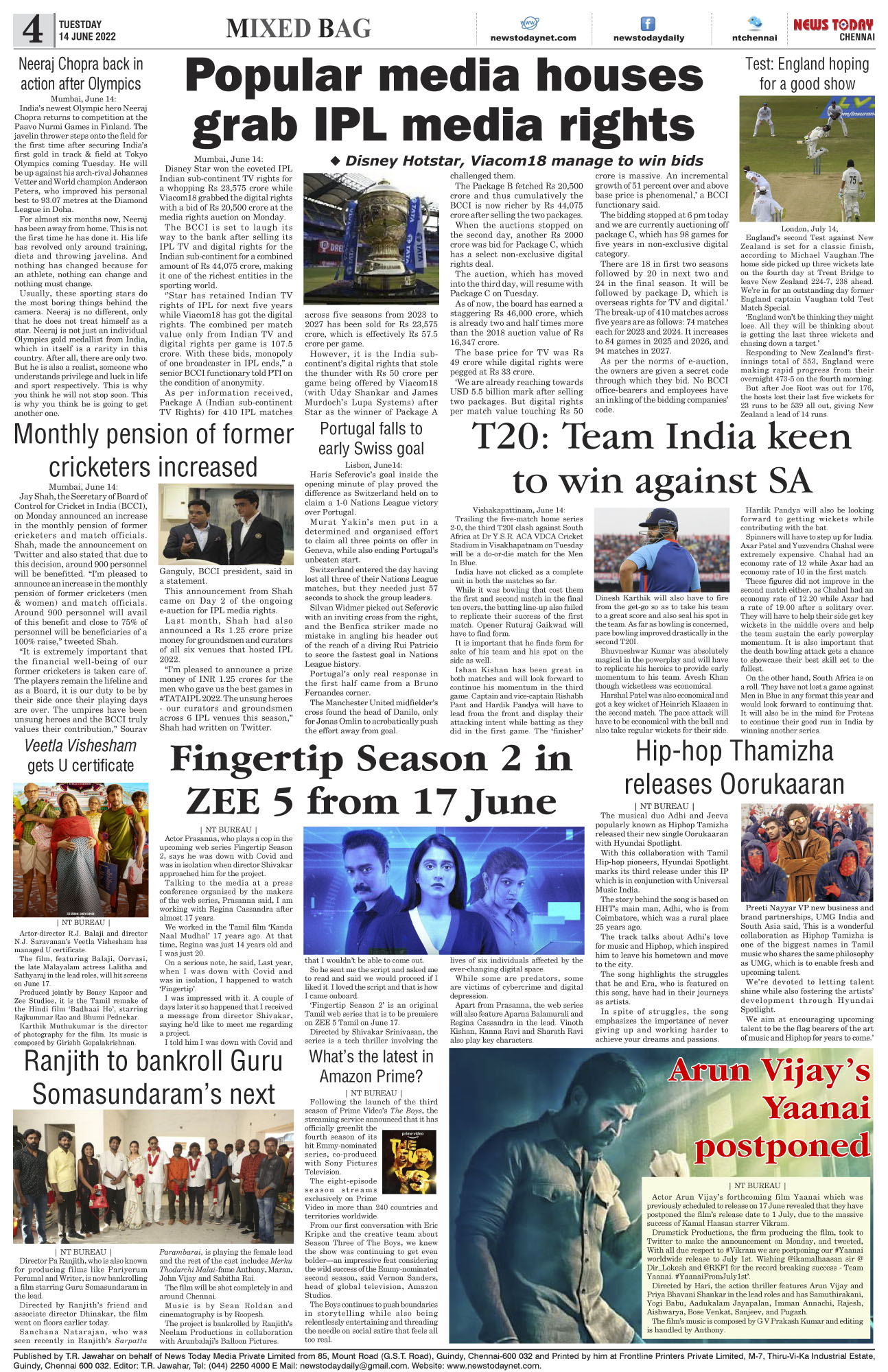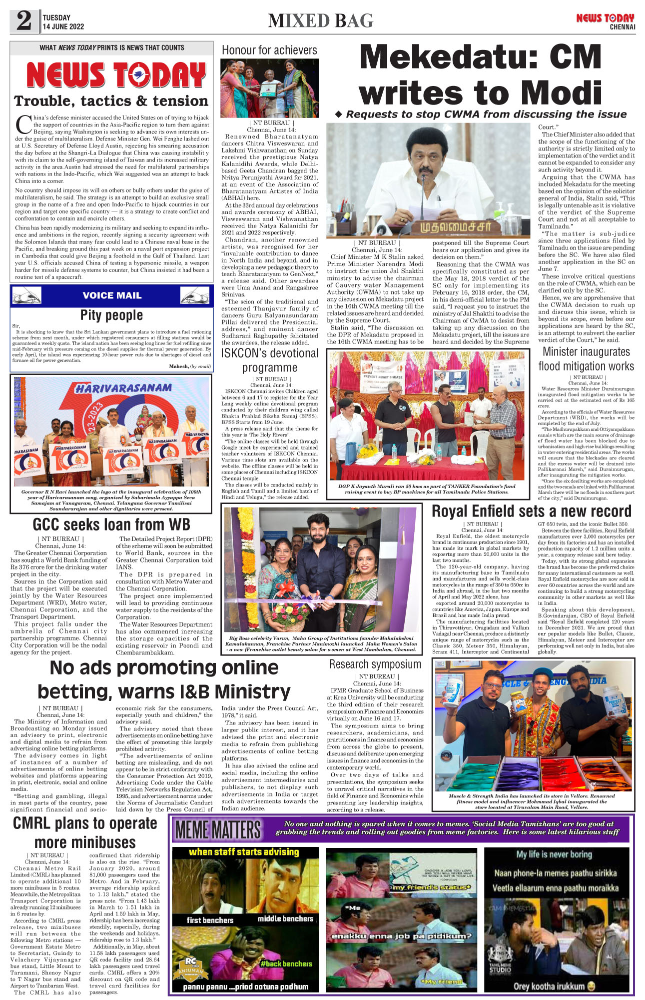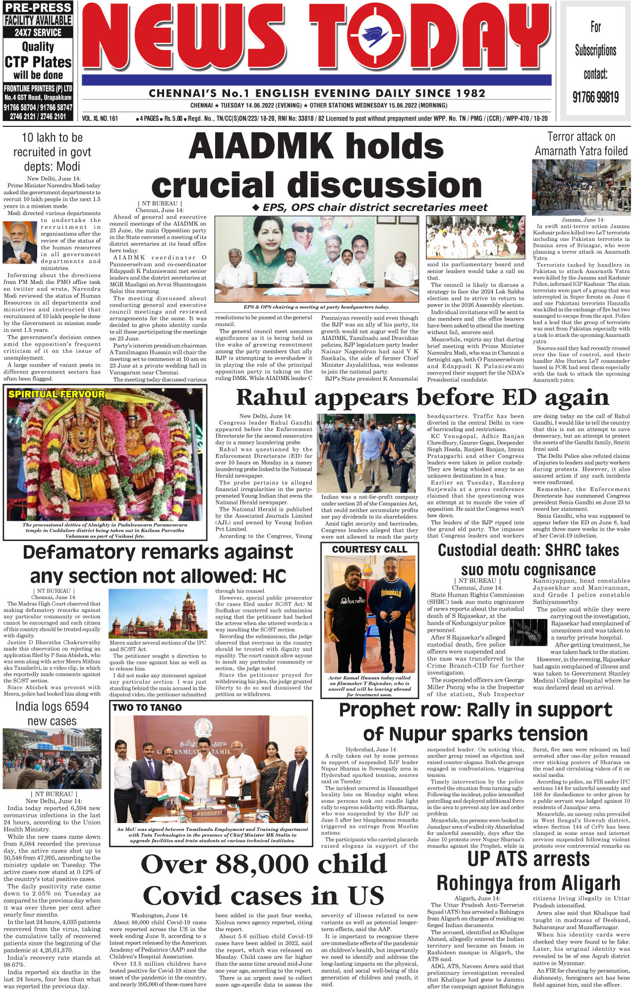 E-PAPER E-paper | 14 June 2022 Spread the love Spread the love By NT BureauPosted on June 14, 2022 ed, MKStalin, modi, NupurSharma, Rahul, rohingya