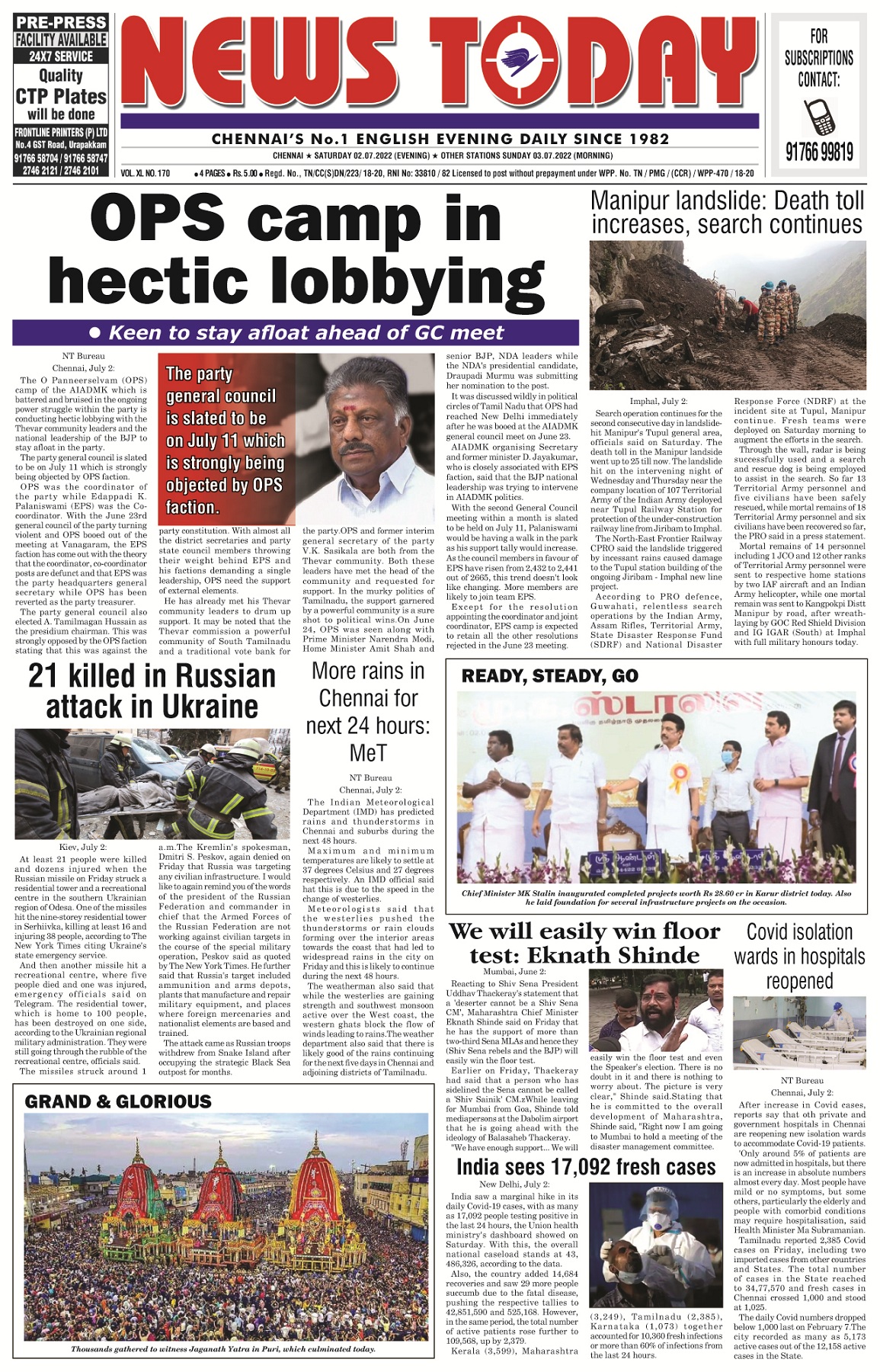 E-PAPER E-paper | 02 July 2022 Spread the love Spread the love By NT BureauPosted on July 2, 2022July 2, 2022