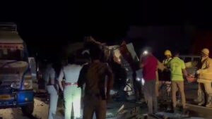 Chennai: At least four people died after a car collided with a container truck in Madurai, an official said on Monday.