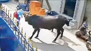 In a shocking incident captured on CCTV, a jersey cow was seen violently attacking a minor girl in the Arumbakkam area of Chennai, on Wednesday afternoon.