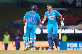 Unfazed by a bland bowling effort, India hit the top gear through Rohit Sharma and Shubman Gill, who made polished unbeaten fifties, to post a 10-wicket win over Nepal that also ensured them an Asia Cup Super Four berth here on Monday. Amidst frequent rain interruptions, Nepal posted an impressive 230 after being asked to bat first. India, required to score 145 from 23 overs as per DLS calculations, went past the line as Rohit (74 not out off 59 balls) and Gill (67 not out off 62 balls) gave power to their chase. Hence, India finished their Group A engagements with three points, while Pakistan had already entered the Super Four having logged three points. Nepal bowed out of the Asia Cup without any points. But they had some special moments in the match both with ball and bat. Nepal pacers KC Karan and Sompal Kami worked up some good pace to trouble Indian openers Rohit and Gill early on. Karan pinged Rohit’s pads twice in the first over, with one resulting in Nepal resorting to DRS review, and beat him all ends up once with a lovely outswinger. But Gill, though got beaten once by Kami outside the off-stump, played three super smooth shots to find the boundary rope, a testament to his inherent timing. Though he made a bit of a stuttering beginning to his innings, Rohit came into his own after the rain break with a series of fluent shots, including his archetypal pulls. Once they upshifted, Nepal bowlers did not have the experience to pull things back. Though the victory might be treated as a solid step, the Indian think-tank would not have liked the way their bowlers performed against Nepal, who were expected to get rolled over. Their day was also not made easier by fielders who were quite shabby on the field. India dropped three catches inside the first five overs, and there were several misfields and overthrows. But that should not be held against the gutsy Nepalese batsmen. Aasif Sheikh (58 off 97 balls), Kushal Bhurtel