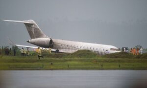 At least three persons were injured after a private business aircraft with six passengers and two crew flying from Vizag to Mumbai skidded off the runway and crash-landed at the Chhatrapati Shivaji Maharaj International Airport, officials said here on Thursday. VT-DBL, a non-scheduled charter Learjet business aircraft, skidded off the runway and crashed while landing. According to preliminary information, the mishap is attributed to heavy rains and low visibility at the time of the incident, around 5.30 p.m. The Mumbai Fire Brigade, police and airport rescue and relief teams had rushed to the spot following the incident. The aircraft is said to be around 14 years old and operated by VSR Ventures Pvt. Ltd., New Delhi.