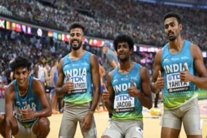 Hangzhou, Oct 5: The quartet of Anas Muhammed Yahiya, Amoj Jacob, Muhammed Ajmal Variyathodi and Rajesh Ramesh broke the national record to clinch India’s 18th gold in the Asian Games in the men’s 4x400m relay on Wednesday.The Indian team clocked a timing of 3:01.58s to walk away with another gold in the day.