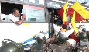 Visuals showed the members of the pro-Kannada groups raising slogans and protesting over the Cauvery water-sharing row.