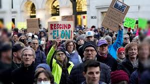 In Lansing, Michigan, protesters braved the cold weather. Catie Miglietti, from Ann Arbor, expressed concerns about Musk’s access to Treasury Department data. She held a sign depicting Musk as a puppeteer controlling Trump. “If we don’t stop it and get Congress to do something, it’s an attack on democracy,” Miglietti told news agency AP.