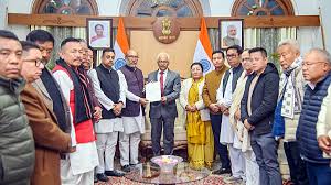 Manipur Chief Minister N Biren Singh on Sunday tendered his resignation to Governor Ajay Kumar Bhalla at the Raj Bhavan, officials said.Manipur Chief Minister N Biren Singh on Sunday tendered his resignation to Governor Ajay Kumar Bhalla at the Raj Bhavan, officials said.Singh was accompanied by 14 MLAs belonging to the BJP and NPF. State BJP president A Sharda and senior saffron party leader Sambit Patra was also part of the delegation.