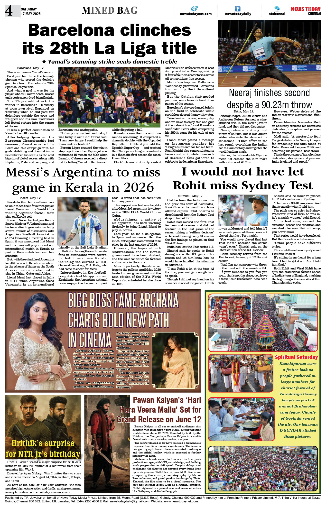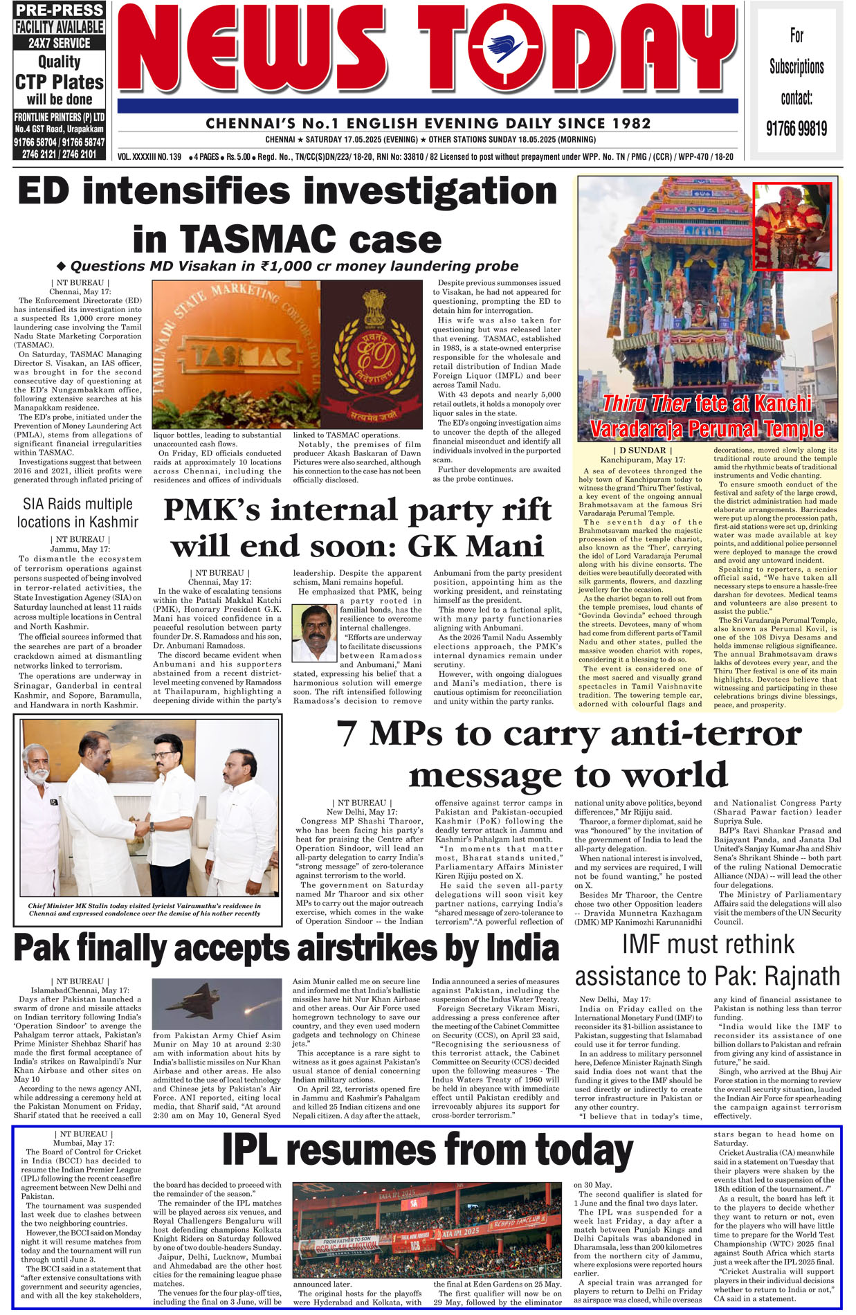 E-PAPER E-paper 17 May 2025 Spread the love Spread the love By NT BureauPosted on May 17, 2025 #Epaper #newstoday #newstodayepaper #chennaidailyevening