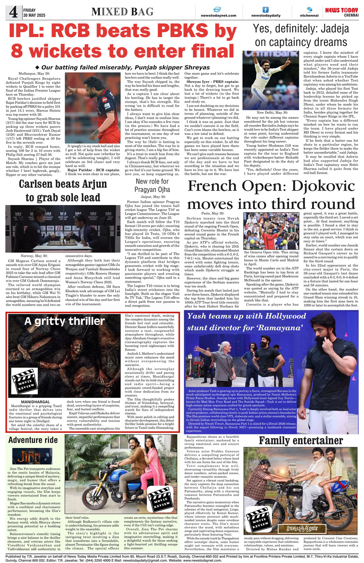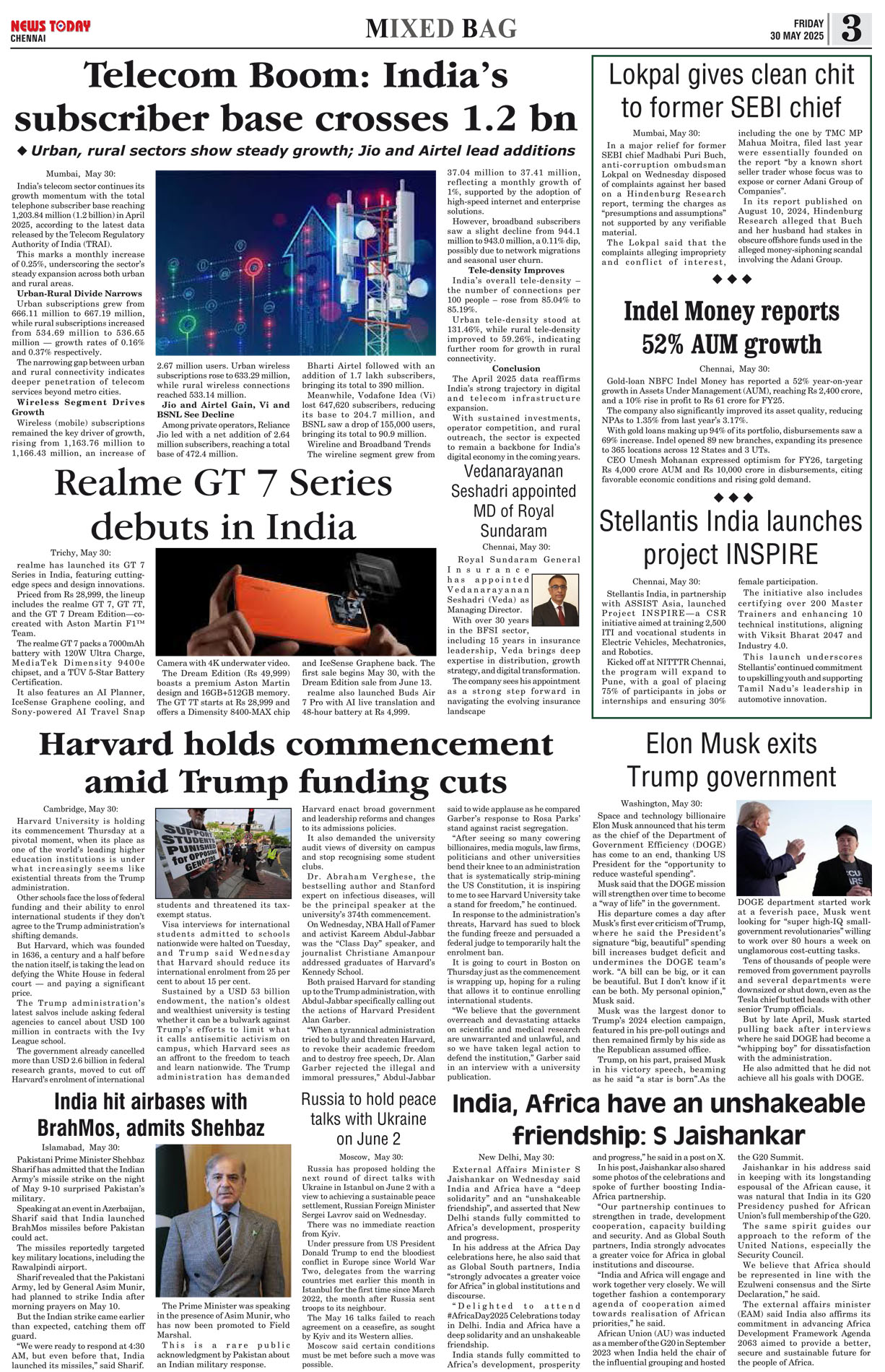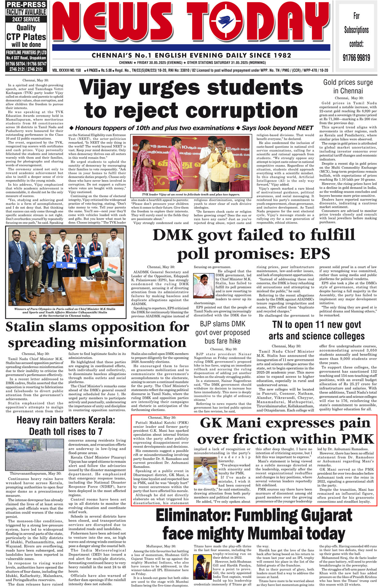 E-PAPER E-paper 30 May 2025 Spread the love Spread the love By NT BureauPosted on May 30, 2025 #Epaper #newstoday #newstodayepaper #chennaidailyevening