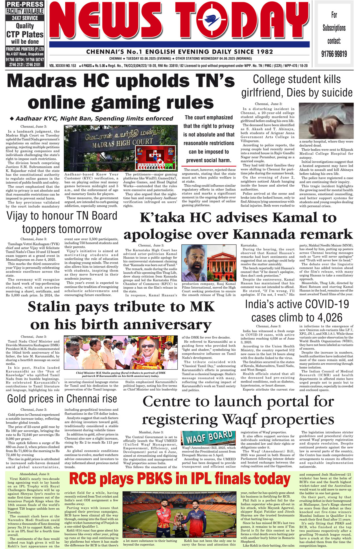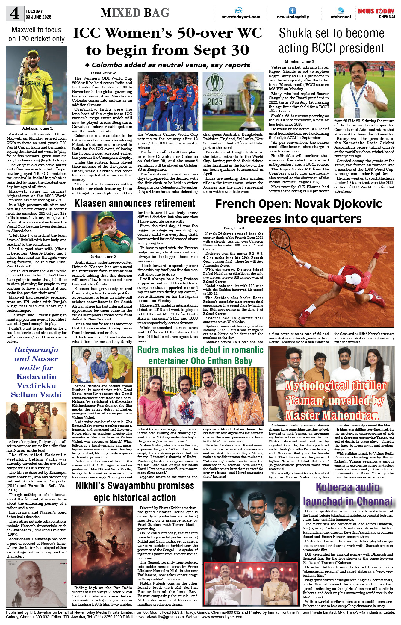 E-PAPER E-paper 03 June 2025 Spread the love Spread the love By NT BureauPosted on June 3, 2025 #Epaper #newstoday #newstodayepaper #chennaidailyevening
