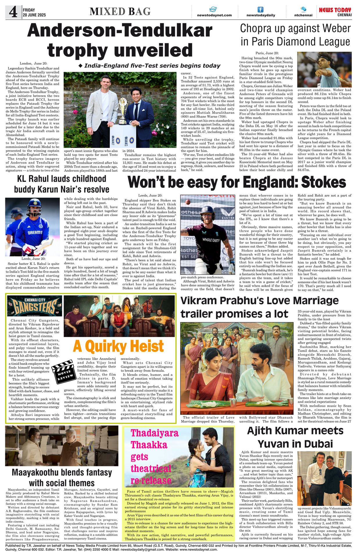 E-PAPER E-paper 20 June 2025 Spread the love Spread the love By NT BureauPosted on June 20, 2025June 21, 2025 #Epaper #newstoday #newstodayepaper #chennaidailyevening