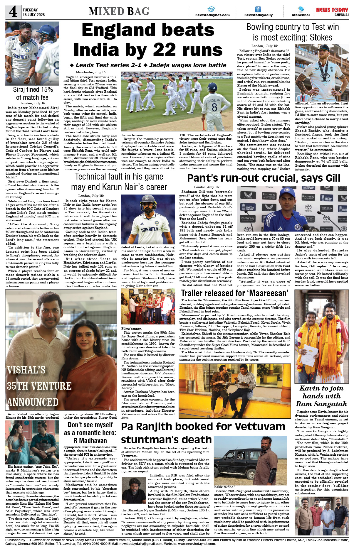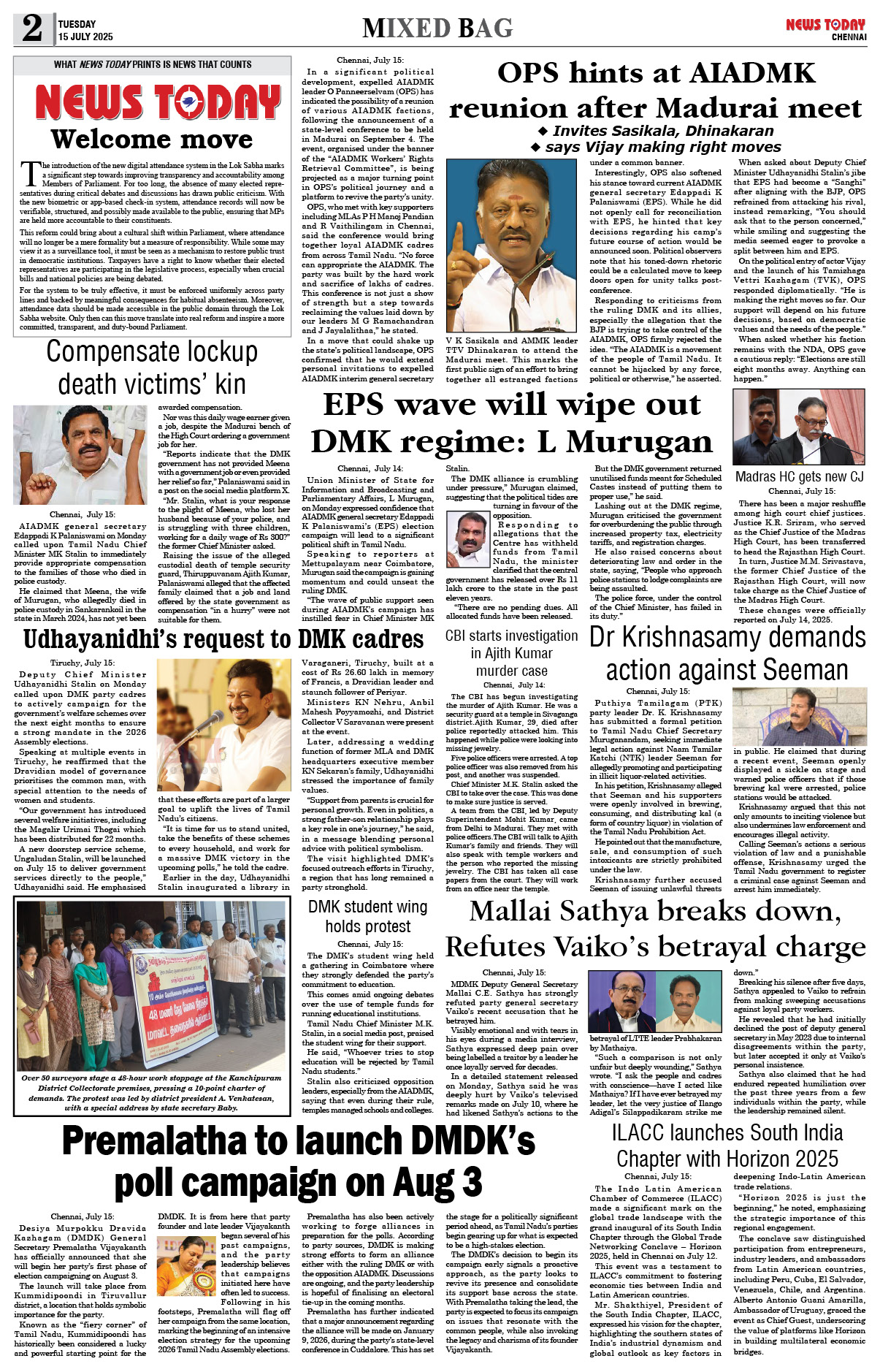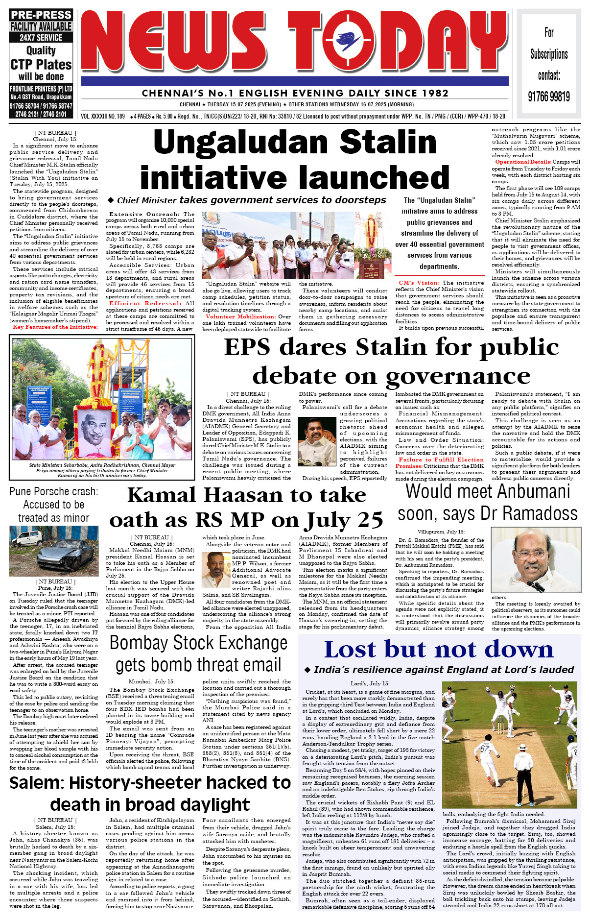 E-PAPER E-paper 15 July 2025 Spread the love Spread the love By NT BureauPosted on July 15, 2025 #Epaper #newstoday #newstodayepaper #chennaidailyevening