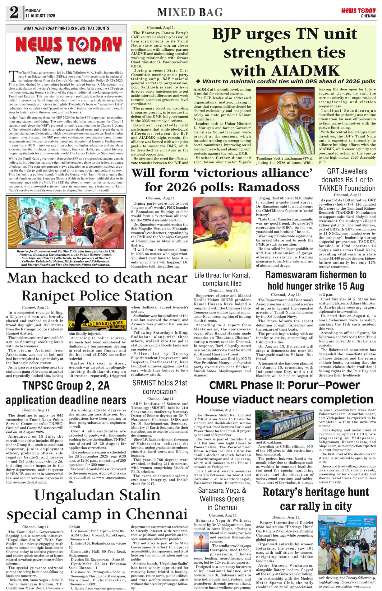 E-PAPER E-paper 11 August 2025 Spread the love Spread the love By NT BureauPosted on August 11, 2025 #Epaper #newstoday #newstodayepaper #chennaidailyevening