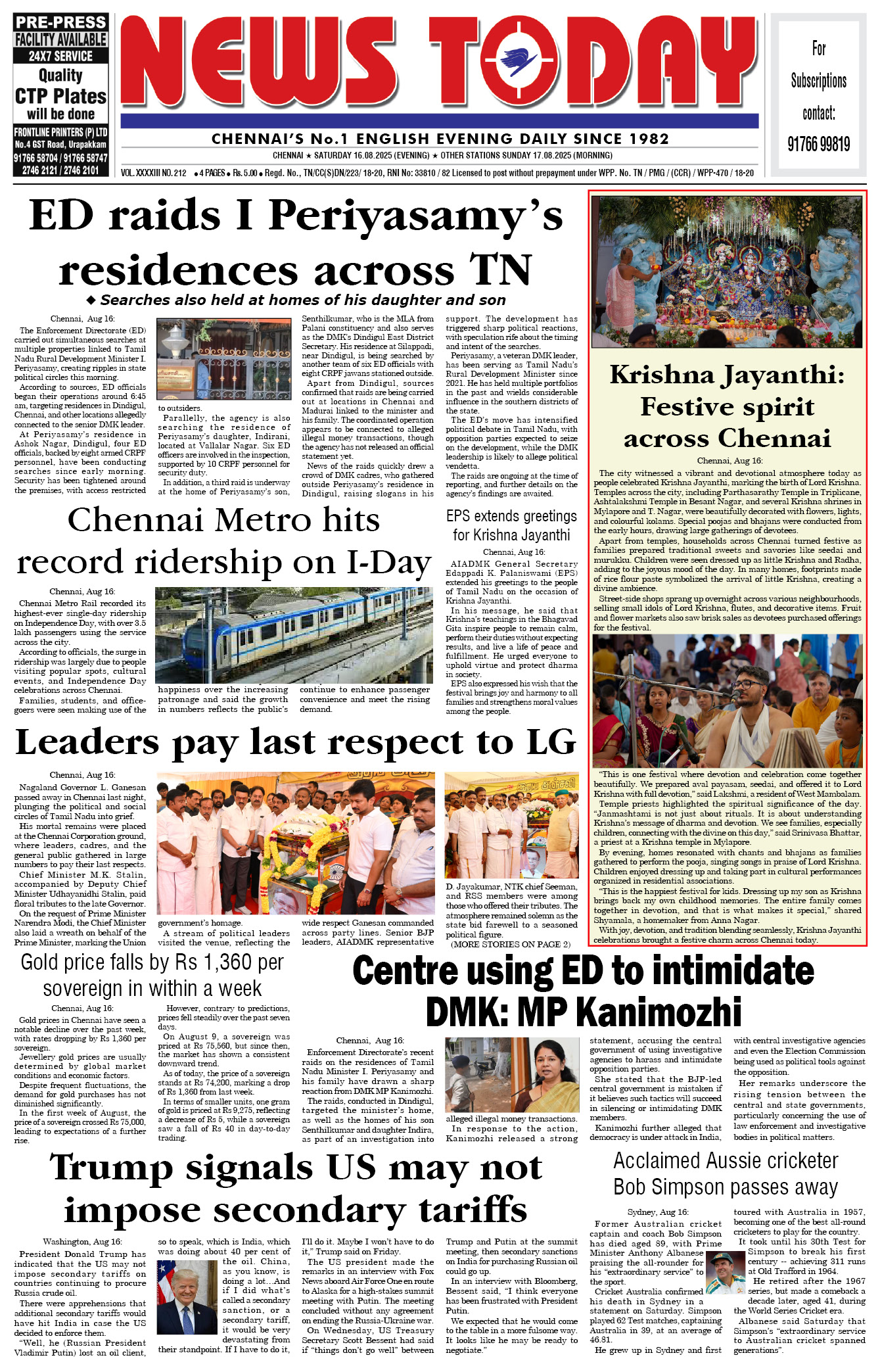 #Epaper #newstoday #newstodayepaper #chennaidailyevening