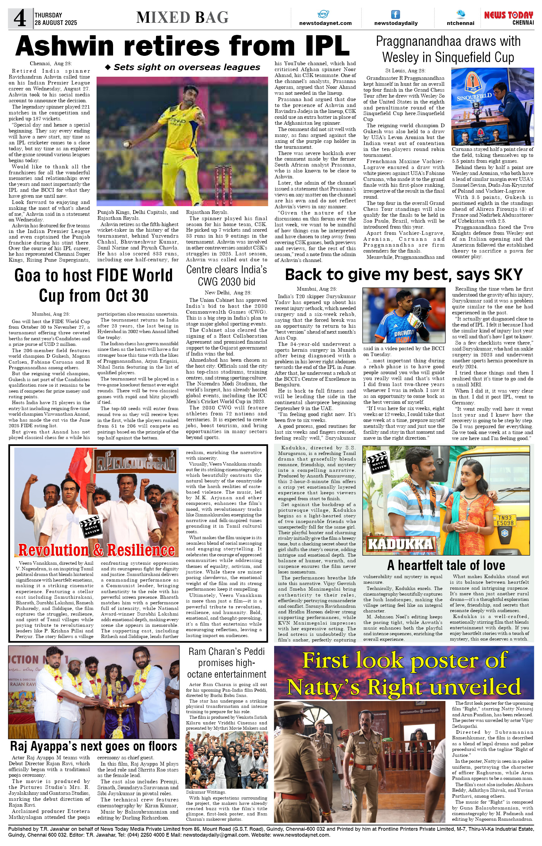 E-PAPER E-paper 28 August 2025 Spread the love Spread the love By NT BureauPosted on August 28, 2025 #Epaper #newstoday #newstodayepaper #chennaidailyevening