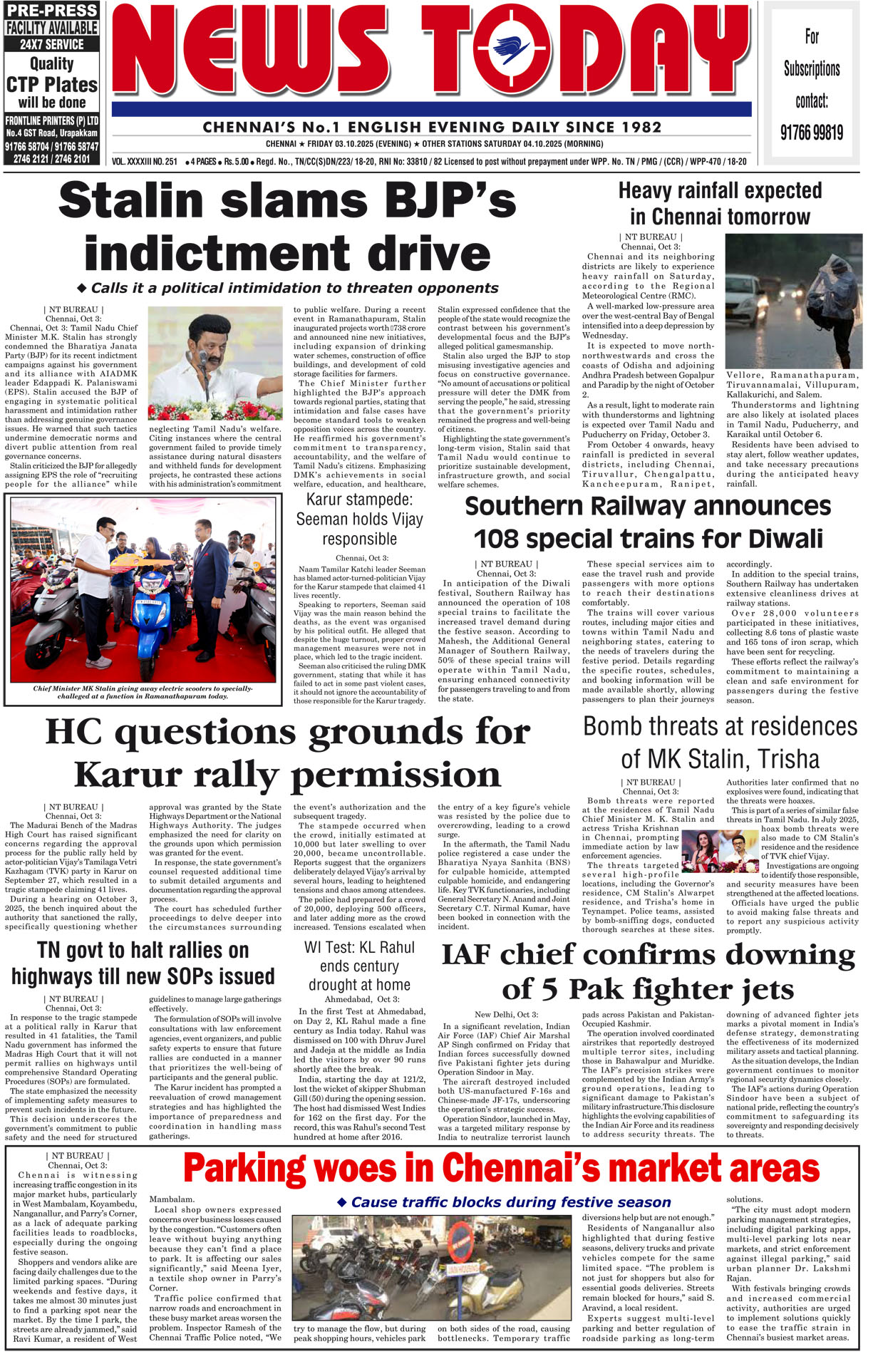 E-PAPER E-paper 03 October 2025 Spread the love Spread the love By NT BureauPosted on October 3, 2025 #Epaper #newstoday #newstodayepaper #chennaidailyevening