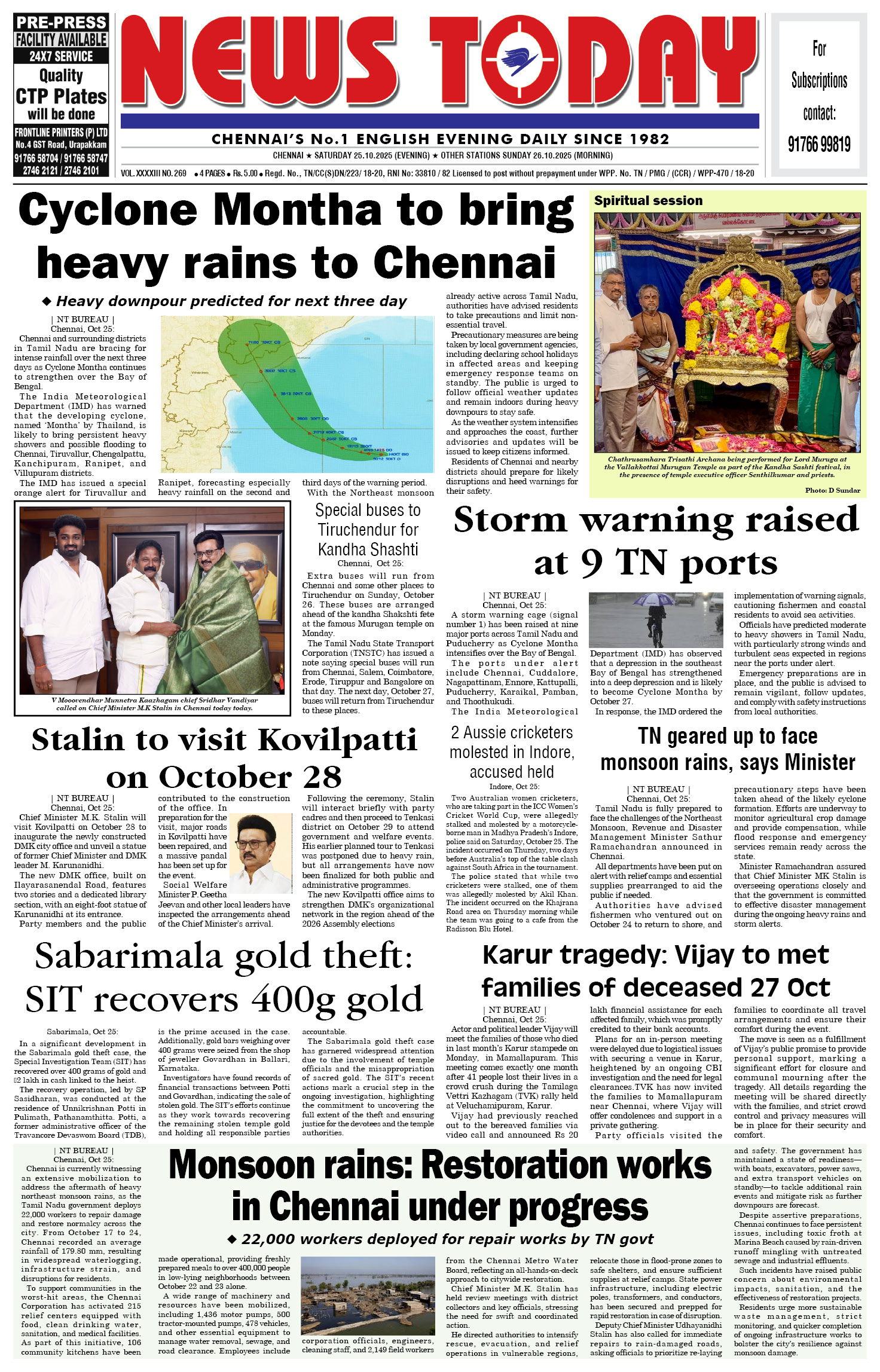 E-PAPER E-paper 25 October 2025 Spread the love Spread the love By NT BureauPosted on October 25, 2025 #Epaper #newstoday #newstodayepaper #chennaidailyevening
